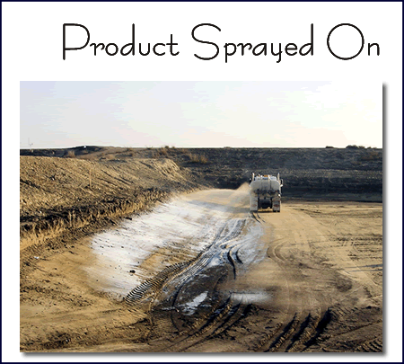 The ESS-13 Spray-on application is most easily applied with a water truck, but other spray equipment is acceptable. The product will arrive on-site in 55-gallon drums. The product should be transferred from the drums into the water truck under the direction of the on-site Seepage Control Field Representative. The product should then be sprayed on to the prepared sub-grade starting at the top of the slope, working downward. It is important that the spray is uniform, covers the entire area, and is not at a rate that causes erosion. The product is to be applied in repeated light applications that build on each other. Once the sub-grade is thoroughly covered, the application is complete.