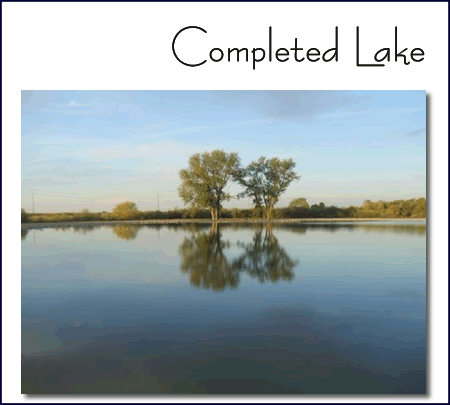 The lake can then be filled. Precautions need to be taken during filling to prevent erosion of the soil liner.