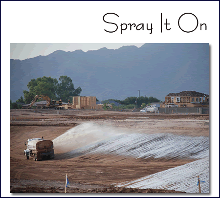 The desired goal is a uniform soil, water and emulsion mixture. Typically a 2,000 gallon or larger water truck is required for moisturizing the mixing pad with water and the specified amounts of soil sealant and soil stabilizer.